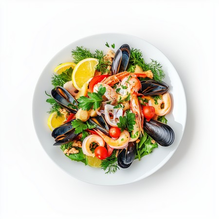 ❗❗❗Описание демо товара❗❗❗ Филе осьминога, кальмары и креветки, приготовленные на гриле под прованскими травами. Подача сопровождается свежей зеленью и оливковым маслом холодного отжима.
